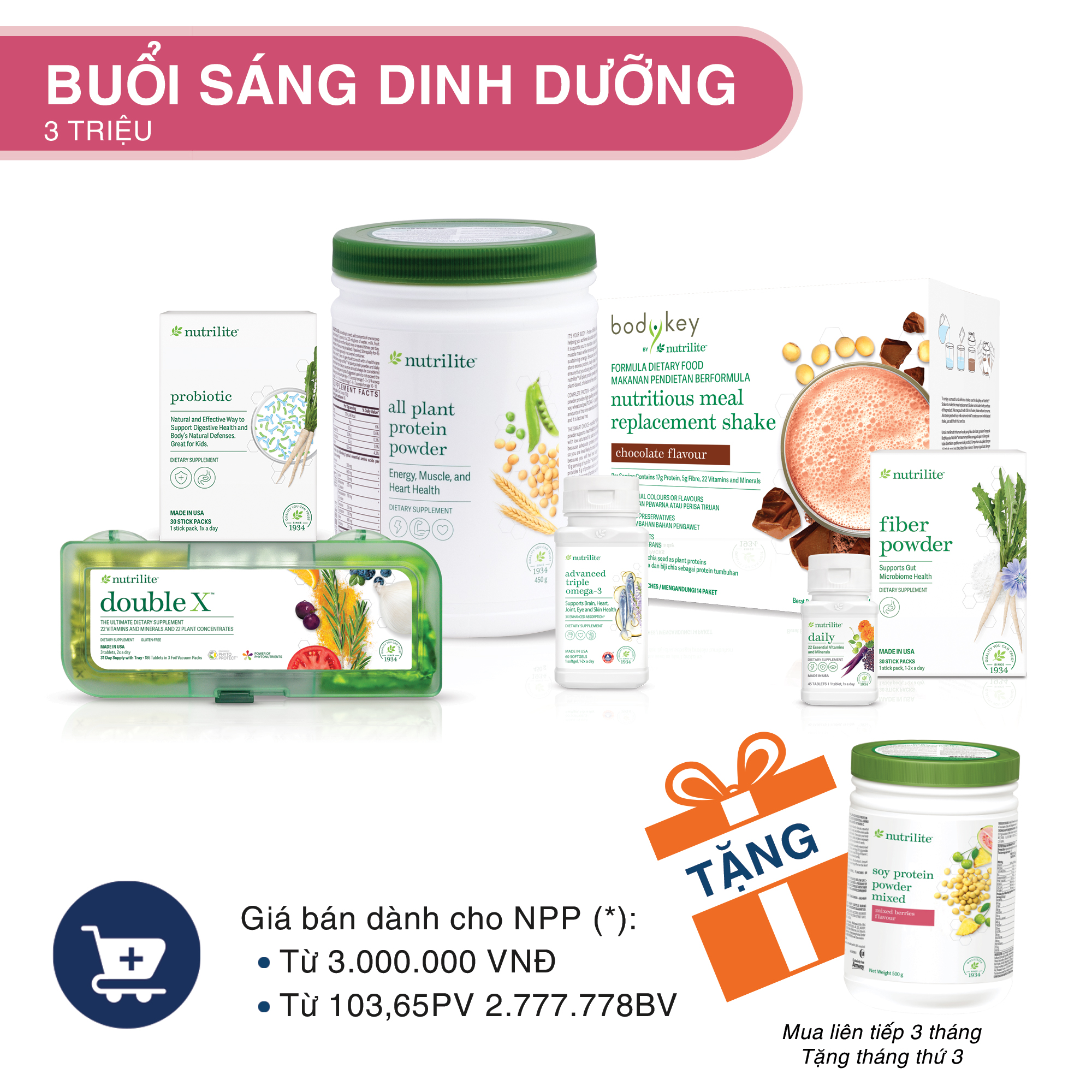 Mua đơn hàng bao gồm các sản phẩm trong chương trình “Buổi sáng dinh dưỡng” từ 1.500.000 VNĐ trở lên mỗi tháng liên tục 3 tháng sẽ nhận được quà tặng tháng thứ 3: